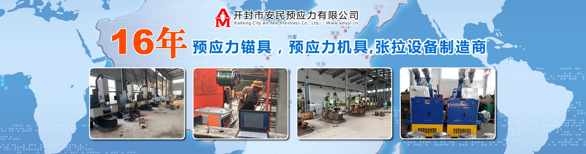 開(kāi)封市安民預(yù)應(yīng)力有限公司KAIFENG CITY ANMIN PRESTRESSED CO LTD. 開(kāi)封市安民預(yù)應(yīng)力有限公司是研制、生產(chǎn)、銷(xiāo)售各種預(yù)應(yīng)力產(chǎn)品及預(yù)應(yīng)力施工的專(zhuān)業(yè)廠(chǎng)家。公司主導(dǎo)產(chǎn)品為AM、BM系列錨具,鐓頭錨、弗氏錨、P型錨、精軋螺紋鋼錨具及配套各系列干 斤頂、高壓油泵、灰漿泵、攪拌機(jī)、制管機(jī).智能張拉.智能壓漿等機(jī)具產(chǎn)品。公司產(chǎn)品已達(dá)到GB/14370-2007標(biāo)準(zhǔn)及國(guó)際預(yù)應(yīng)力混凝土協(xié)會(huì)《FIP1993》標(biāo)準(zhǔn)。 公司設(shè)備**,技術(shù)力量雄厚。原材料從采購(gòu)、生產(chǎn)、檢驗(yàn)和服務(wù)的全過(guò)程中,均在國(guó)際標(biāo)準(zhǔn)質(zhì)量體...