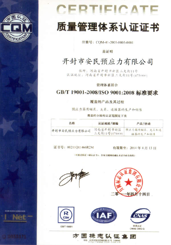 資質(zhì)證書(shū)-張拉千斤頂_智能張拉設備_智能壓漿設備_開(kāi)封市安民預應力有限公司-開(kāi)封市安民預應力有限公司專(zhuān)業(yè)制造預應力錨具,智能張拉設備,智能壓漿設備,張拉千斤頂,預應力機具電話(huà):183-0387-5888